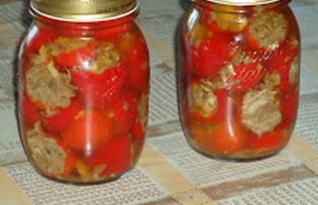 Peperoncini rossi piccanti ripieni di sgombro e funghi