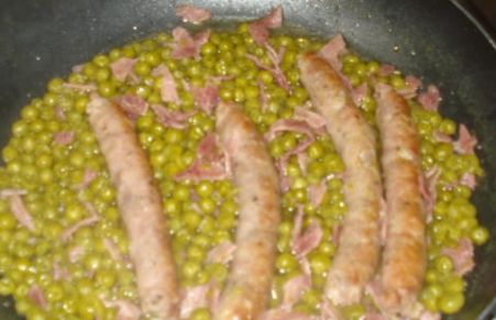 Salsiccia con piselli e prosciutto