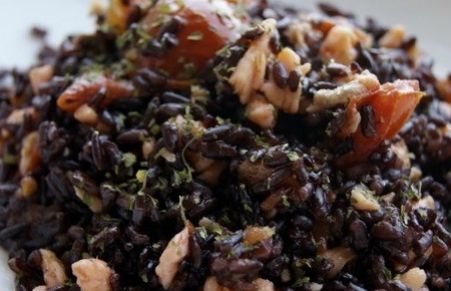 Riso nero venere con salmone affumicato e pomodorini freschi