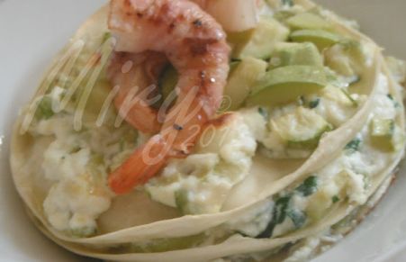 Lasagnetta di pasta fresca con ricotta, zucchine e gamberi pancettati