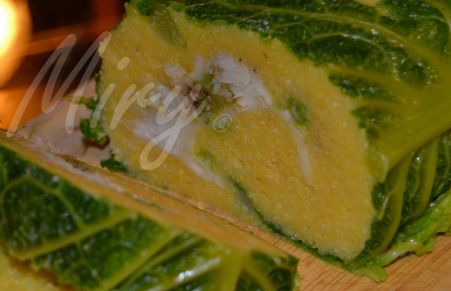 Rotolo di polenta con verza e merluzzo