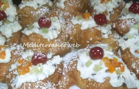 dobbiamo risalire al periodo arabo, anche se inizialmente questo tipo d'impasto interessava principalmente la gastronomia come nel caso dello sfincione, poi con un impasto simile per fare i cardi in pastella e con la pastella avanzata si facevano le sfincette fritte e girate nello zucchero a capodanno, cosi si arrivò con qualche modifica alla sfincia anche nella pasticceria siciliana, un percorso quasi obbligato con la sfincia di San Giuseppe, ormai famosa in tutto il mondo. Si tratta di un soffice impasto in questo caso fritto e farcito con crema di ricotta, una vera delizia guarnito con zuccata, ciliegie candite, bucce d'arancia candite e granelle di pistacchi.Trovi qui tutte le foto che abbiamo ricevuto per questa ricetta di Sfince di San Giuseppe.