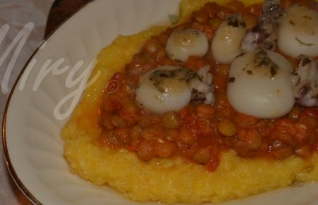 Lenticchie in umido con moscardini e polenta