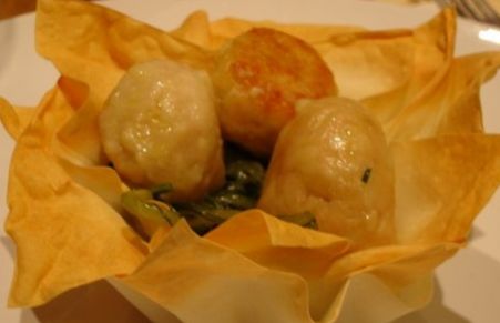 Cestini di pasta fillo con polpettine di polle e prosciutto al limone