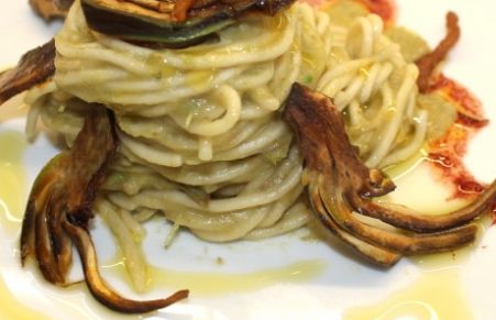 Un piatto che è risultato particolarmente avvolgente ed in cui le fettine di carciofo sottili, appena scottate in padella, contrastano con gli spaghetti cremosi e le striscioline di lardo di colonnata danno un tocco di sapidità piacevole al palato.