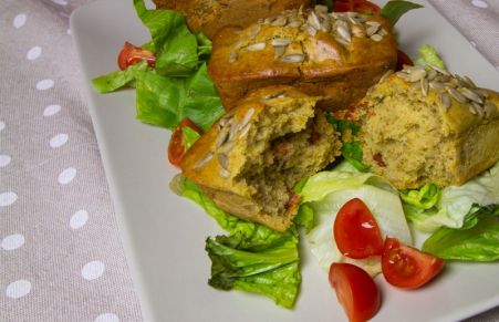 Mini plumcake salati ai ceci con pomodori secchi senza uova e senza lattosio