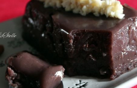 Questo budino è un dolce altamente dietetico, ottenuto con azuki (fagioli giapponesi, molto usati per la preprazione di dolci), latte di origine vegetale e agar agar, un addensante naturale privo di calorie (si tratta di un'alga). Assolutamente da provare, un must per chi è " a dieta!".