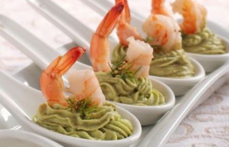 Cucchiaini salati all'avocado e gamberetti