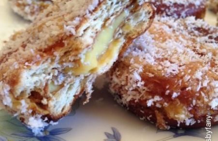 Questi biscotti ripieni di crema pasticcera, ricoperti di cocco, sono una merenda golosa e originale, ideale per i bambini. Trovi qui tutte le foto che abbiamo ricevuto per questa ricetta di Biscotti fritti al cocco ripieni di crema.
