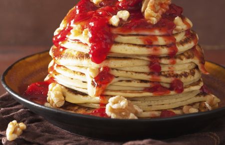 I pancakes con marmellata di fragole, sono delle deliziose frittelle per la colazione, originarie dei paesi anglosassoni. Con la marmellata di fragole saranno ottimi. Trovi qui tutte le foto che abbiamo ricevuto per questa ricetta di Pancakes con marmellata di fragole.