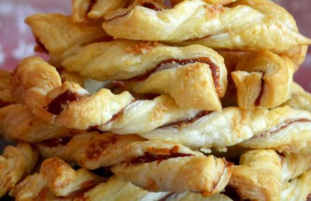 Torciglioni di pasta sfoglia con prosciutto e parmigiano