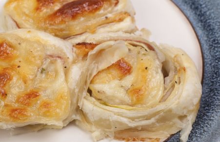 Girelle di pasta sfoglia con prosciutto crudo di Parma e Emmental