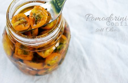 L’ingrediente del giorno è il pomodorino, per me fragolini e datterini gialli, vista la grande produzione delle mie piantine nell’orto di casa, ho pensato di prepararne alcuni da conservare.