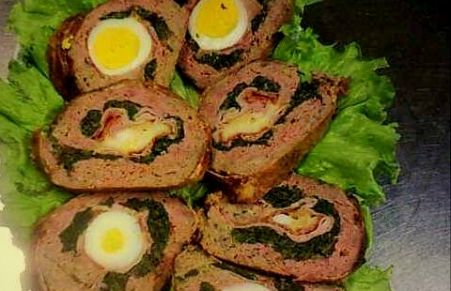 Polpettone ripieno di spinaci, prosciutto cotto, uova sode e provolone piccante