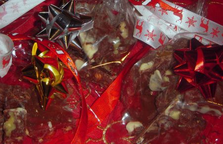 Credo che un dolce pensiero valga molto di piu' di un futile oggetto comprato perche' costretti da una ciclica ritualita' che si ripete ogni anno. Per questo motivo io, a ridosso delle feste natalizie, adoro dilettarmi con queste prelibatezze da regalare ad amici e parenti piu' stretti, perche' sono pienamente convinta che un pezzo di buon cioccolato porti con se allegria, spensieratezza e buon umore! Trovi qui tutte le foto che abbiamo ricevuto per questa ricetta di I miei famosissimi "saltami in bocca" di cioccolato e frutta secca.