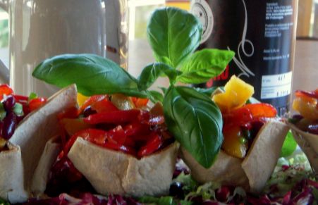 Finalmente una ricetta facile da realizzare, molto bella da vedere, ma sopratutto buonissima!!! Provatela per assaporare il gusto agro dolce delle verdure e la bonta' delle famosissime tortillas!!! Trovi qui tutte le foto che abbiamo ricevuto per questa ricetta di Cestini arcobaleno di tortillas.