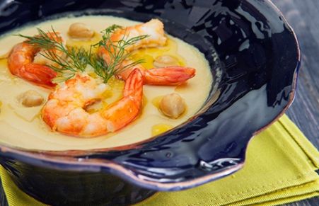 Vellutata di ceci e gamberi