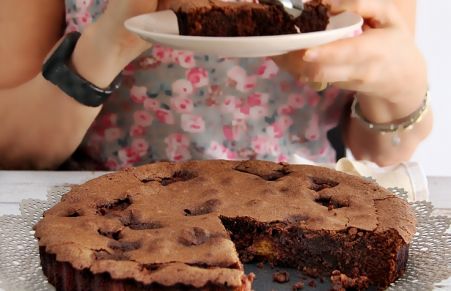 Torta al cioccolato, pesche e amaretti
