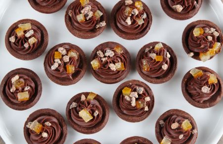 Crostatine con crema al cioccolato e arance candite