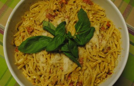Questa pasta, veramente ottima, ce l’ha cucinata Barbara la prima volta che siamo stati in vacanza a Cardedu. L’avevo dimenticata ... e l’ho mangiata lo scorso anno a casa di Marina e Roberto. Da allora la ripropongo con una certa frequenza e piace a tutti. Trovi qui tutte le foto che abbiamo ricevuto per questa ricetta di Pasta al pesto con pesce spada e pomodorini.