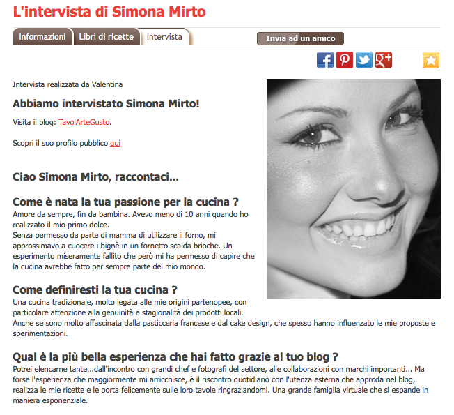 Avrai a disposizione una pagina di profilo sul nostro sito dedicata a te, al tuo blog e alle ricette che vorrai condividere.