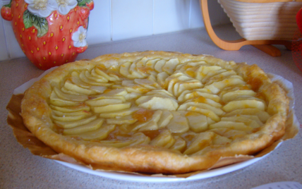 Preriscaldate il forno a 180°. Tagliate la mela a fettine fine. Mescolate in una ciotola l'uvetta, la farina di mandorle, lo zucchero di canna, la farina e la cannella. Stendete il rotolo di pasta sfoglia e aggiungeteci le mele al centro. Con un coltello appuntito, tagliate la pasta su ogni lato delle mele. Fate dei tagli sulla superficie, distanziati di 2 cm l'uno dall'altro. Iniziate ad intrecciare la pasta partendo dalle estremità e portandole verso il centro, accavallando le bande di pasta.