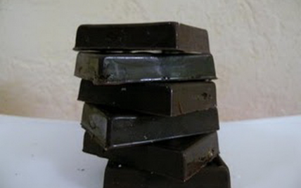 Riempire a metà degli stampi quadrati di cioccolato fuso (possibilmente, utilizzare del cioccolato di ottima qualità, con una buona pounta di acidità), far solidificare al fresco.