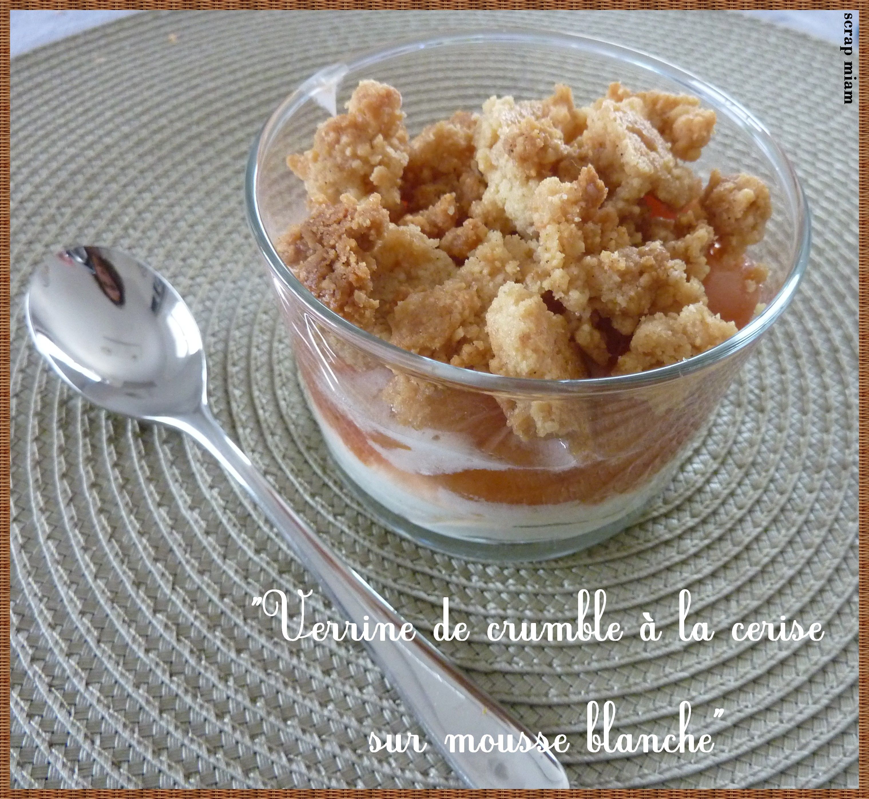 Bicchierini di crumble alla ciliegia su mousse bianca