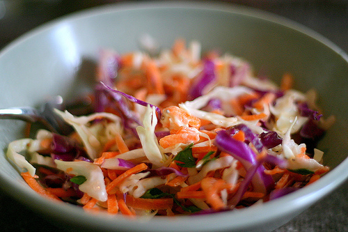 Il coleslaw è un'insalata popolare nell'America del Nord, e consiste in cavolo cappuccio grattugiato, mescolato a carote grattugiate e cipolle. Esistono numerose varianti di questa ricetta, che includono altri ingredienti, come ad esempio il cavolo rosso, l'emmental grattugiato, ed a volte anche ananas o mela a pezzetti. Gli olandesi che hanno fondato lo stato di New York coltivavano cavoli nelle vicinanze del fiume Hudson e li preparavano sotto forma di insalata di cavoli grattugiati, chiamata "koolsa" ("kool" significa "cavolo", e "sla" significa "insalata"). Per sarne di più sul coleslaw, leggete il nostro articolo (clicca qui). Seguite la nostra video ricetta per imparare a preparare questa insalata incredibilmente gustosa.