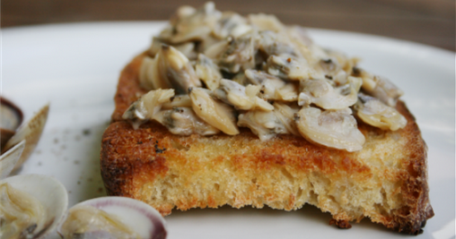 Guarnire le bruschette con le vongole sgusiate e una cucchiaiata di sugo di cottura, aggiungere un filo d'olio a crudo, una spolverizzata di pepe o di peperoncino e servire subito.