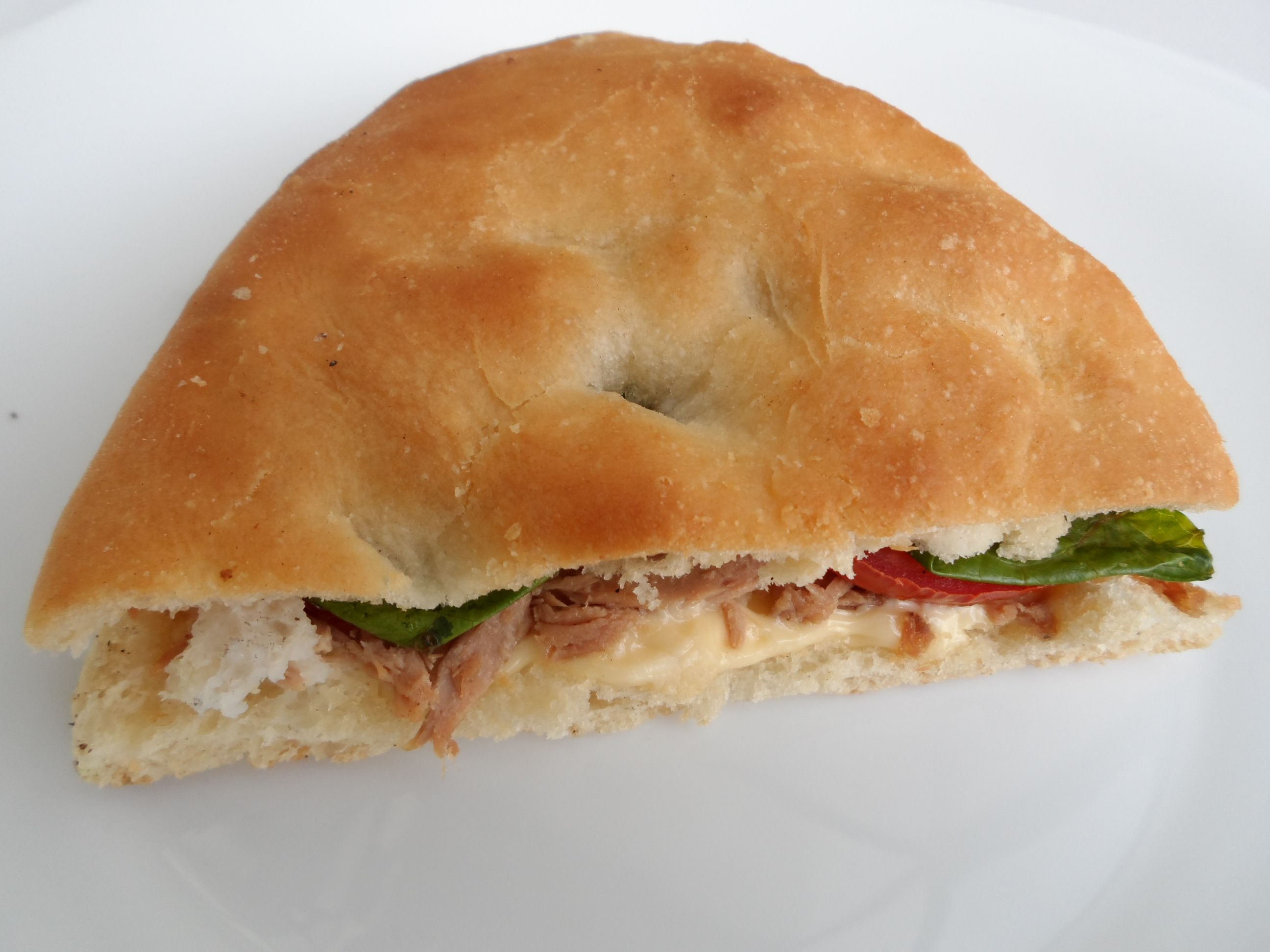 Tagliare la pizza a metà, spalmare una delle parti con la maionese e aggiungere la lattuga.