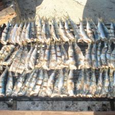 Ungere la griglia e porvi al di sopra gli spiedini poi lasciare cuocere per 5 minuti. Durante la cottura, cospargere con la marinata rimanente.