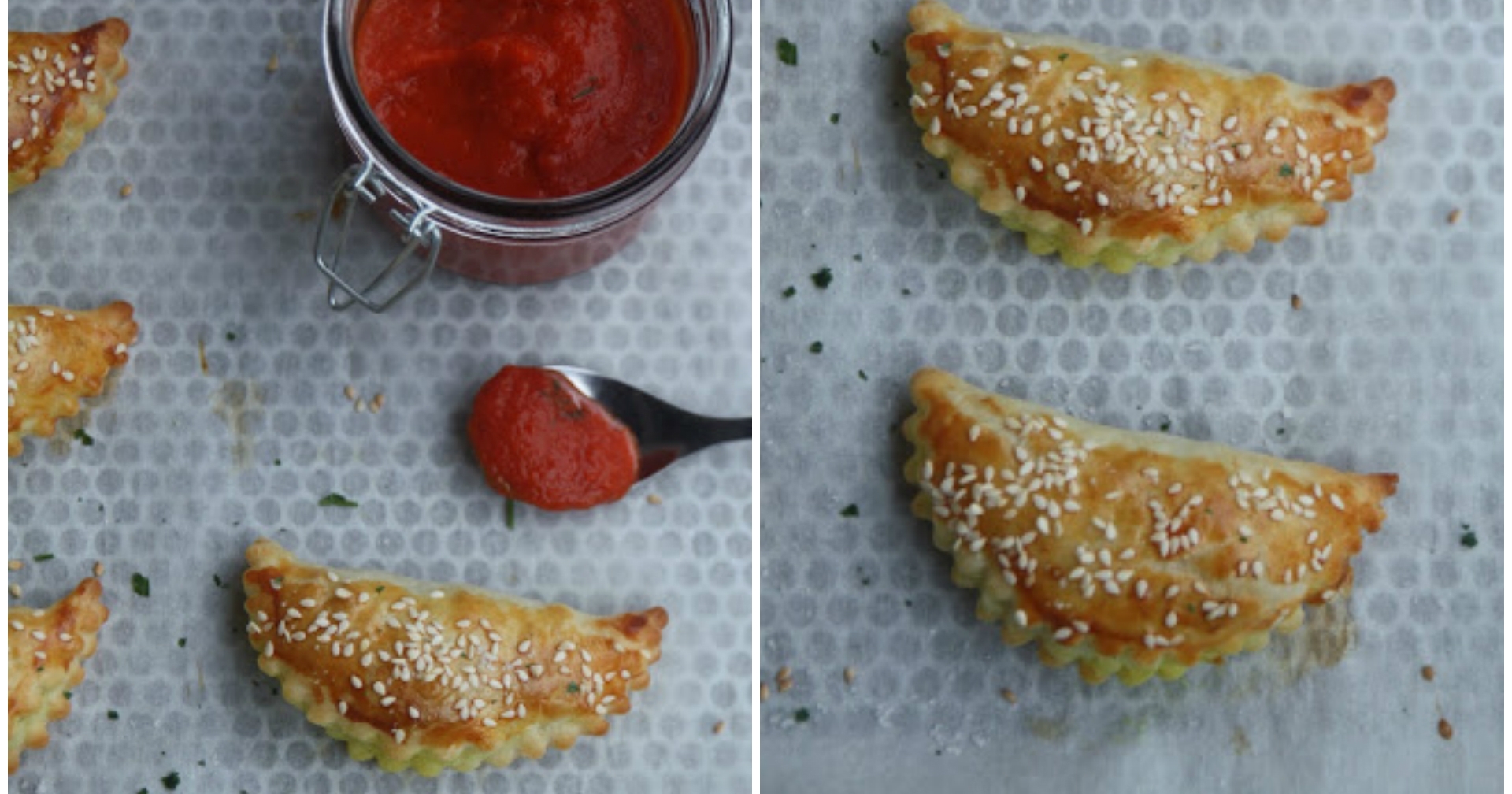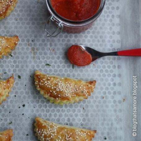 Calzoncini con manzo speziato, salsa al pomodoro piccante