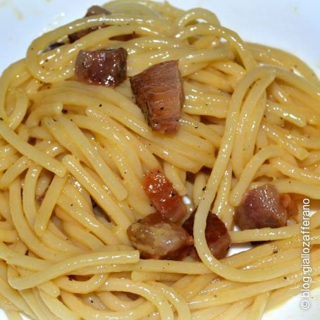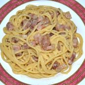 Lessate gli spaghetti, scolateli conservando l’acqua di cottura. Aggiungete per prima la pancetta. Mescolate bene e mettete qualche cucchiaio di acqua della pasta. A questo punto aggiungete l’uovo mescolando subito e fate amalgamare bene, se necessario aggiungete un altro pò d’acqua. Se volete aggiungete un pò di pepe nero. Servite e Buon Appetito!!!