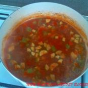 Pulire e tagliare a dadini le verdure. Quando la carne sarà a metà cottura, inserire le verdure, la salsa di pomodoro e il peperoncino;