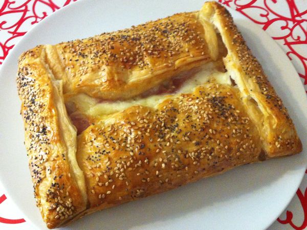 Ricoprite la pasta sfoglia con semi di sesamo e di papavero ed infornate a 190 C per 30 minuti circa sulla 1 griglia dal basso del forno.