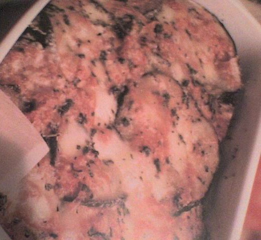 Continuare ad alternare gli strati sino ad esaurimento degli ingredienti e cercando di terminare con uno strato di melanzane,