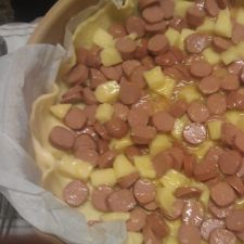 Incidere la pasta a metà nel senso della larghezza, creando due mezzelune, quindi ricavare circa 12 rettangoli.
