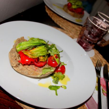 In una padella unta d'olio soffriggere l'aglio e unire i fiori di zucchina privati del pistillo.