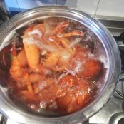 Fate bollire abbondante acqua in un pentolone, quando bolle abbassate la fiamma e tuffateci gli astici (se sono molto grandi o la vostra pentola non li contiene tutti, fate l'operazione più volte).