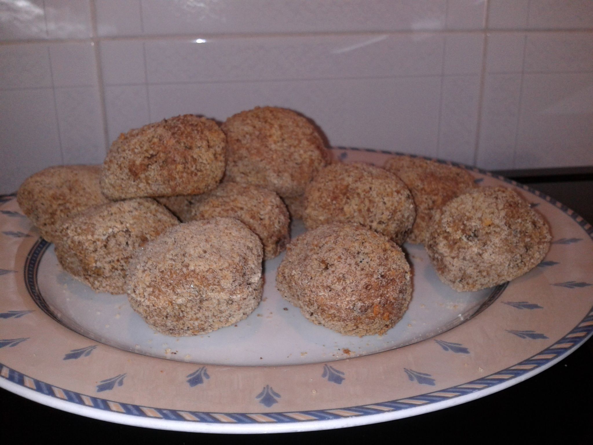 Preleviamo piccole quantità d'impasto e diamo la forma a pallina con le mani e ripassiamole nel pane grattugiato (il restante 50g.).