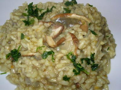 Aggiungere ora il brodo caldo in quantità da ricoprire tutto il risoA metà cottura del riso (8 minuti circa) aggiungere i funghi e il prezzemolo e ricoprire man mano che il risotto si asciuga con dei mestoli di brodo caldo.L’aggiunta di brodo va fatta gradualmente, in modo da evitare di ritrovarsi un risotto brodoso.