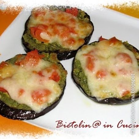 Deliziose bruschette vegetariane, in cui le melanzane sostituiscono egregiamente le fette di pane!