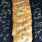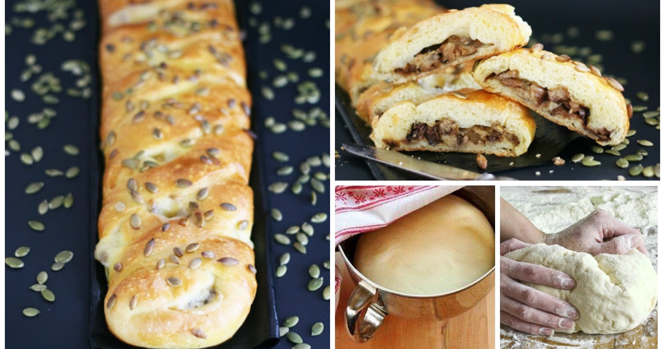 In una ciotola unite il latte tiepido con il lievito, mescolate per bene, unite la farina, zucchero, l'uovo ed il sale, cominciate ad impastare e man mano aggiunte l'olio d'oliva, lavorate per bene la pasta finchè non ottenete un composto compatto e liscio, mettete a lievitare per almeno un'ora. Nel frattempo, pulite e tagliate a tocchetti le melanzane, lavatele e salate riponete in uno scolapasta e scolate per mezz'ora. Friggete in olio bollente e mettete da parte. Riprendete l'impasto, disponetelo su di una spianatoia infarinata, stendetelo con un mattarello, formando un rettangolo. Al centro del rettangolo disponete le melanzane e la mozzarella tagliata a cubetti. A questo punto per intrecciare la treccia tagliate la parte rimanente del rettangolo in tante strisce, sia da un lato che dall'altro, intrecciate alternando le strisce di ciascun lato, richiudete bene i bordi, spennellate con il tuorlo sbattuto e cospargete con i semi di zucca, fate lievitare per altri 30 minuti. Infornate a 200° per 20 minuti e servite tagliando a fette.