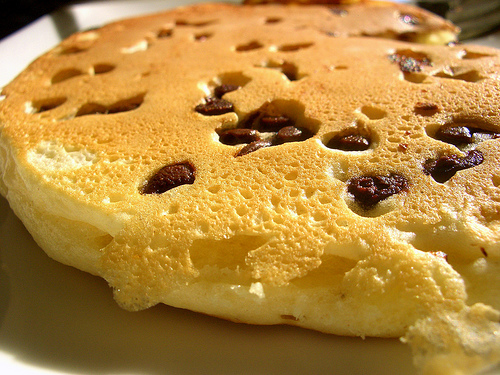 Cominciate a cuocere i pancakes: con un cucchiaio capiente prendete un po’ di impasto e fatelo cuocere su una padella antiaderente ben calda, fino a quando non sono dorati da entrambi i lati.