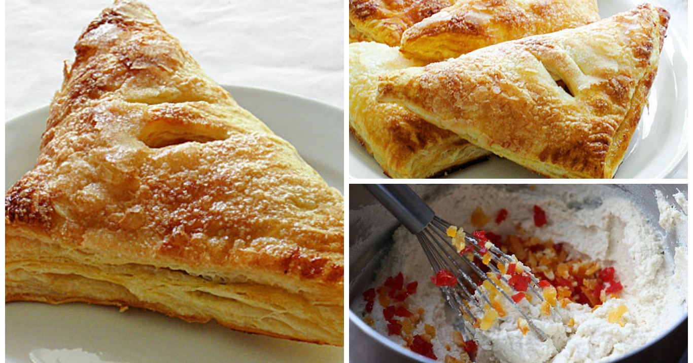 Fate scongelare la pasta sfoglia e, intanto, riducete i canditi in dadolata fine e metteteli a rinvenire in 4 cucchiaiate di liquore. In una ciotola, lavorate la ricotta con lo zucchero semolato, quindi incorporatevi i canditi con il liquore. Tirate la pasta in sfoglia a mm 4 di spessore, quindi ritagliatela in rettangoli regolari di cm 26x7. Pennellateli con l'uovo, quindi mettete al centro di ognuno un sesto del composto di ricotta che coprirete ripiegandovi sopra la parte di sfoglia rimasta libera. Premete con la forchetta lungo i bordi per chiudere i sei "pacchetti", pennellateli d'uovo, quindi incideteli con una serie di tagli superficiali che si apriranno in cottura, creando l'effetto persiana, cioè gelosia. Sistemate le gelosie su una placca imburrata, pennellatele d'uovo, infornatele a 220° per 10' quindi spolverizzatele di zucchero a velo e mettetele in forno ancora per 5'. Servitele tiepide.