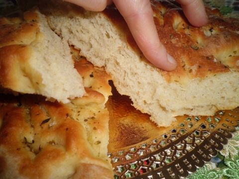 La focaccia è una preparazione semplice e genuina a base di pasta da pane condita con olio,sale e origano.