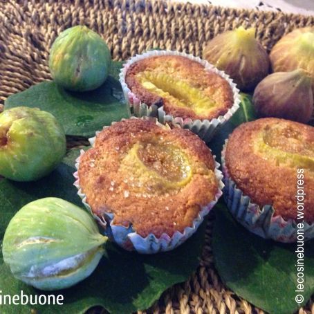 Riempite gli stampini dei muffins fino a 2/3, adagiate sopra ciascuno una rondella di fico e spargete un pò di zucchero di canna.
