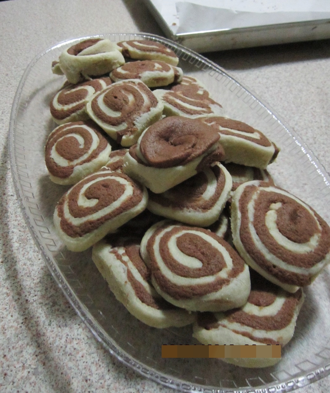 Dividete l'impasto in 2 parti: a una aggiungete e 20 g di farina, all'altra i 20 g di cacao. A questo punto stendete i due impasti su delle pellicole trasparenti in modo rettangolare e mettetele a riposare in frigo per un ora. Trascorsa un ora sovrapponete i due impasti e tagliateli a rondelle, posizionateli sulla carta forno e infornateli a 180° per circa 18 minuti.
