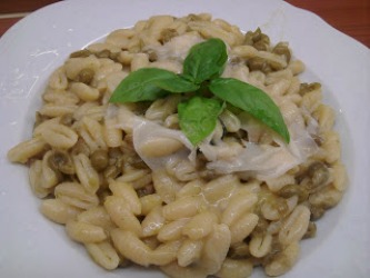 Gli Gnocchetti Sardi con Piselli e Pancetta sono pronti.